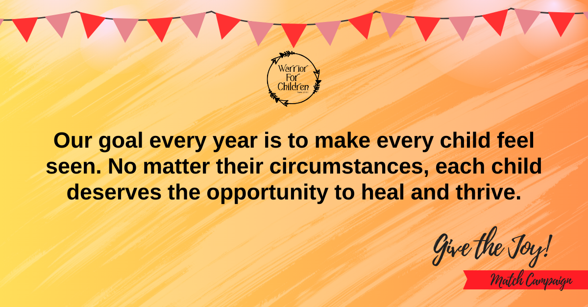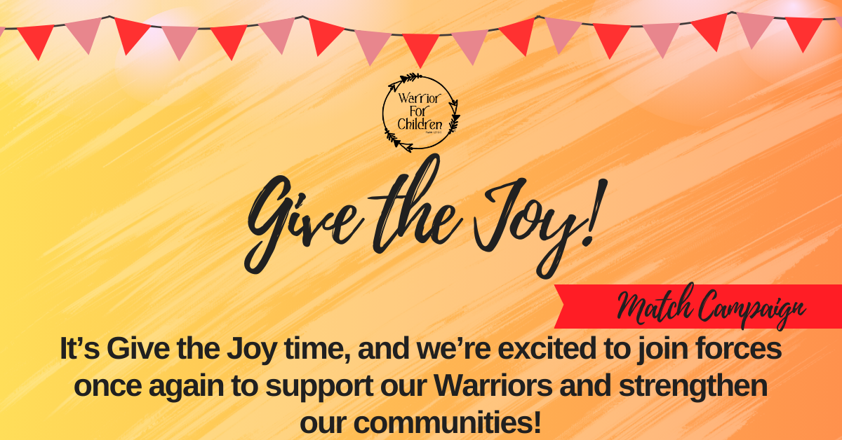 It’s Give the Joy season, and we are honored to stand with you once again in support of our Warriors and our community. This Fall, we’re raising funds to strengthen the well-being of children and families in need, because every child deserves the chance to heal, grow, and thrive.