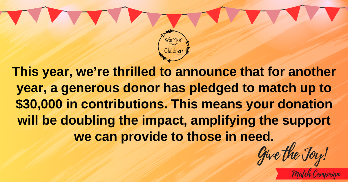 This year, your gift can go twice as far. A generous donor has pledged to match every contribution up to $30,000—doubling the impact of your support.